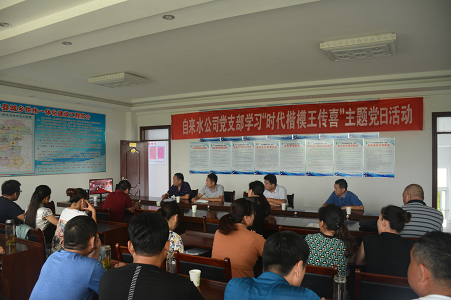 為弘揚(yáng)楷模精神,爭(zhēng)做新時(shí)代先進(jìn)模范,8月23號(hào)上午,金鄉(xiāng)縣金思泉水務(wù)有限公司全體黨員在公司會(huì)議室開展了向“時(shí)代楷模”王傳喜同志學(xué)習(xí)主題黨日活動(dòng)。