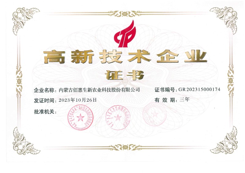 【高新技術企業(yè)】內(nèi)蒙古佰惠生新農(nóng)業(yè)科技股份有限公司