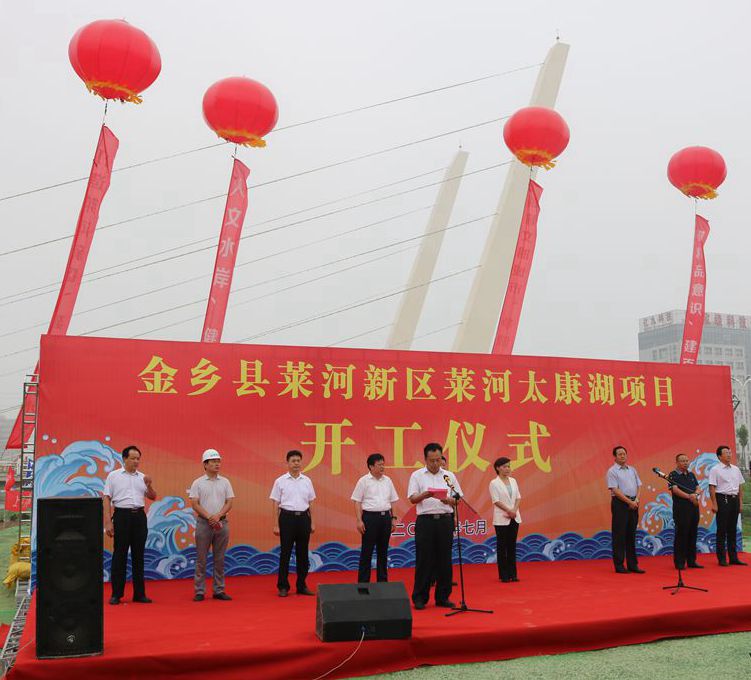 7月28日,萊河新區(qū)萊河太康湖項(xiàng)目開(kāi)工儀式在金鄉(xiāng)縣舉行。金鄉(xiāng)縣委書(shū)記董冰,縣委副書(shū)記、縣長(zhǎng)鄭士民,縣人大常委會(huì)主任付元琦,縣政協(xié)主席胡桂生,山東水控發(fā)展集團(tuán)有限公司董事長(zhǎng)吳東振、總經(jīng)理李加坤,濟(jì)寧金水水利工程有限公司,縣財(cái)政局、國(guó)土局等政府各部門(mén)主要負(fù)責(zé)人150余人出席開(kāi)工儀式。儀式由縣委副書(shū)記、縣長(zhǎng)鄭士民主持。
