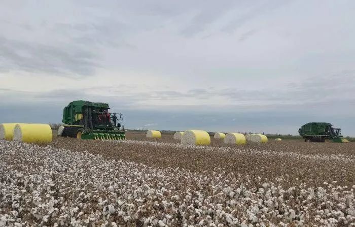 塔城水發(fā)農(nóng)業(yè)發(fā)展有限公司年初根據(jù)公司經(jīng)營(yíng)發(fā)展,采用“公司+合作社+農(nóng)戶”的方式在塔城地區(qū)沙灣市老沙灣鎮(zhèn)包家莊村流轉(zhuǎn)7000畝農(nóng)用地用于種植棉花,現(xiàn)進(jìn)入采收時(shí)節(jié),當(dāng)?shù)睾献魃缏?lián)系采棉機(jī),開足馬力采收棉花,確保棉花及時(shí)、高效采收,預(yù)計(jì)10月底采收完畢。