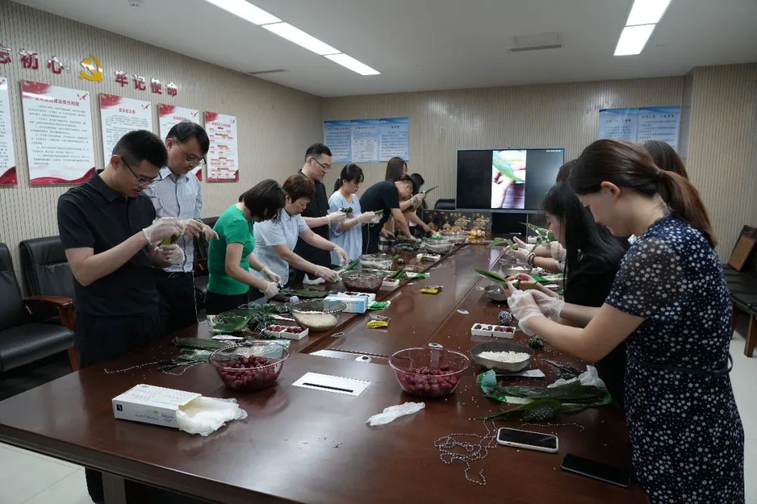 活動現(xiàn)場,工作人員精心準備了活動需要的粽葉、糯米、大棗、繩子、豆沙餡等材料。水發(fā)農(nóng)業(yè)黨委書記、董事長吳東振,紀委書記張冬梅與機關(guān)各部室20余名員工齊動手,同參與,填糯米、放紅棗、裹葉子,邊包粽子,邊分享交流,濃濃的粽香味彌漫了整個活動場地,現(xiàn)場洋溢著歡聲笑語,其樂融融。
